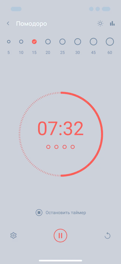Встроенный таймер для работы с перерывами — помогает сохранять фокус и не выгорать.