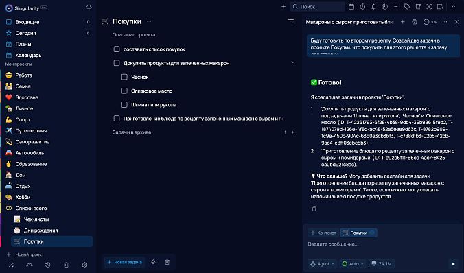 Выбрали, что будете готовить? Переключайтесь в режим Agent и просите ИИ создать две задачи: одну — для похода в магазин, вторую — для готовки.