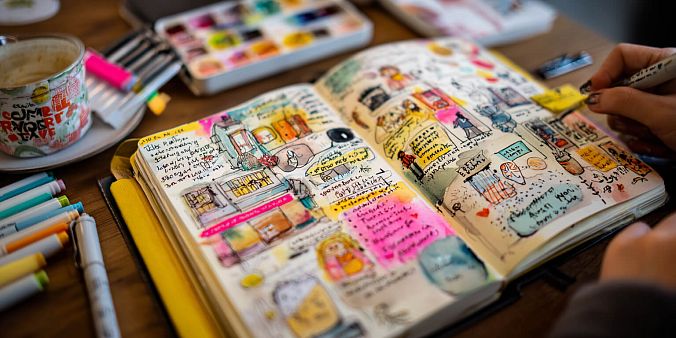 По желанию можете использовать цветные маркеры, стикеры и линейку, если хотите сделать ваш блокнот более ярким.