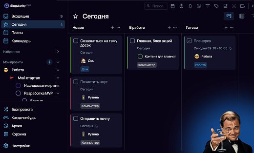 Если все это есть в вашем планировщике, супер! Используйте его. Если — нет (или хочется экспериментов), попробуйте SingularityApp. Дальше подробно покажем, как настроить и использовать GTD на примере нашего приложения.
