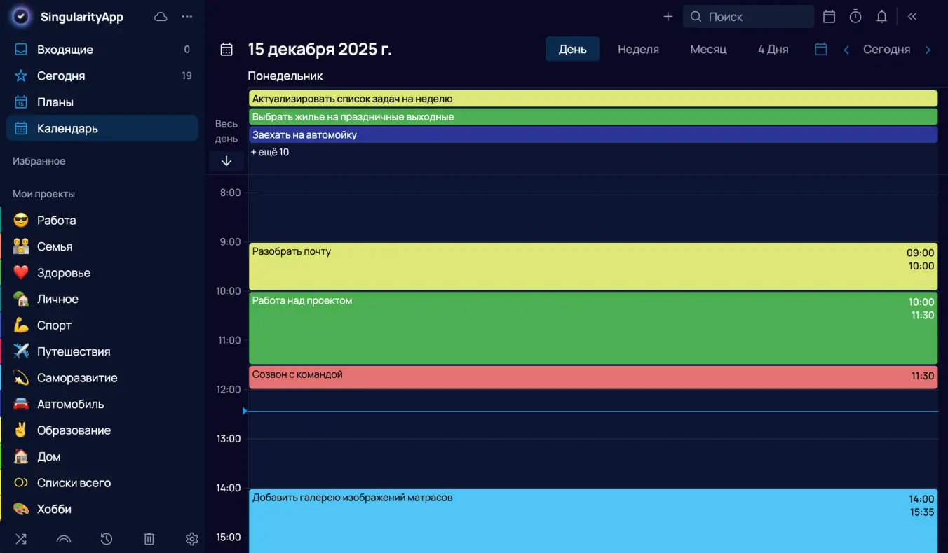 Знаем, что многие пользователи SingularityApp давно отказались от внешних календарей и ведут все планирование в нашем таск-менеджере. Мы это ценим, поэтому дотошно изучили лучшие практики календарных сервисов и сделали работу с нашим календарем еще удобнее. Все подробности рассказываем в статье.