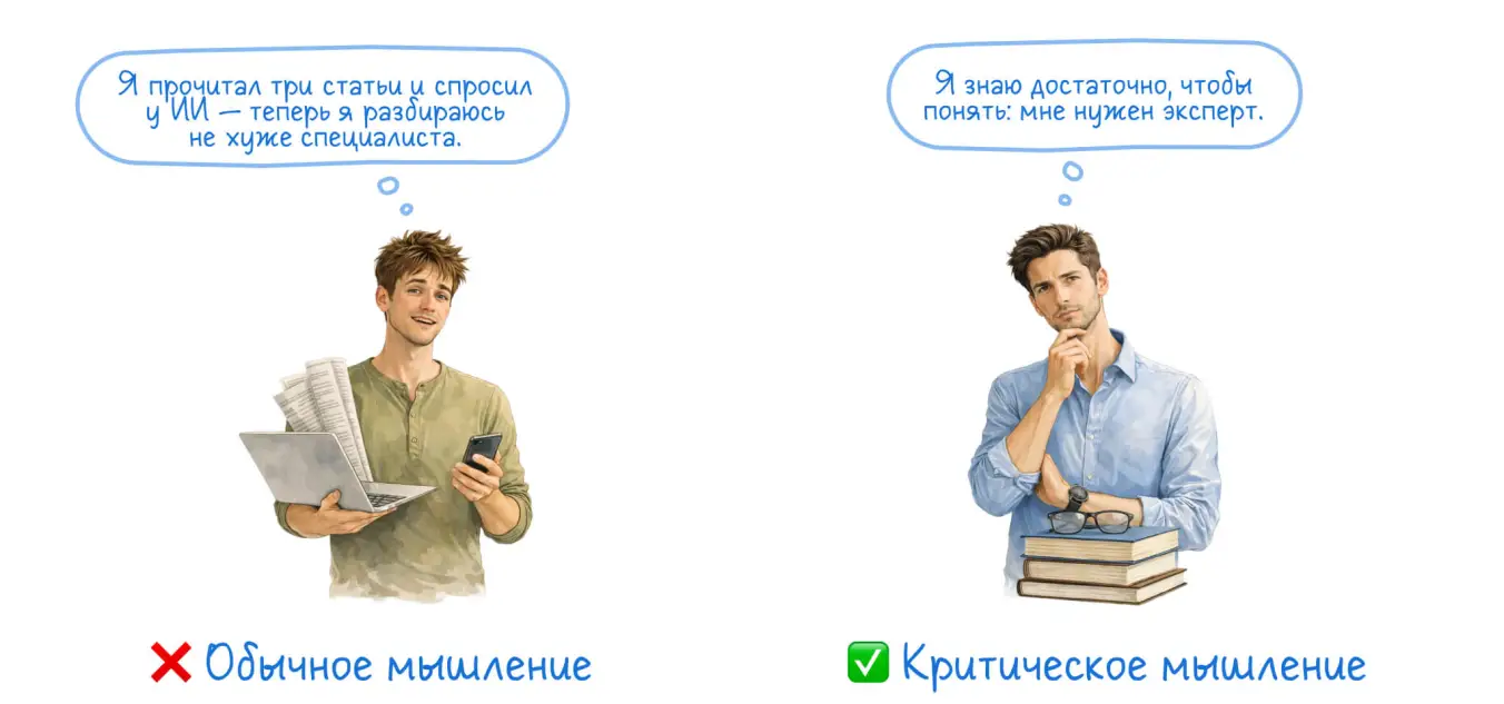 Нет ничего плохого в доступности информации и любопытстве. Проблема в том, что беглое знакомство с темой обычно создает лишь иллюзию знания. Человек получает набор фактов, но не видит связей, нюансов и исключений — а в этом и заключается суть экспертизы.