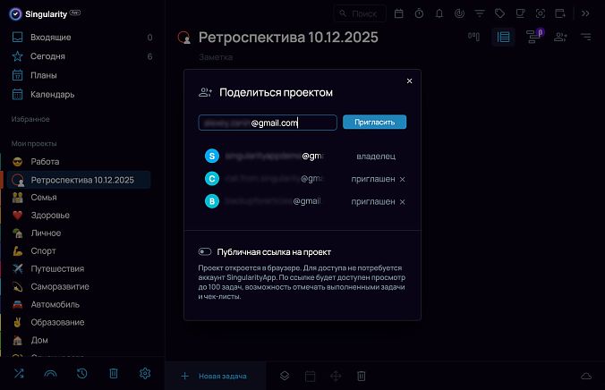- Пригласите участников в проект, созданный на шаге подготовки ретроспективы.
