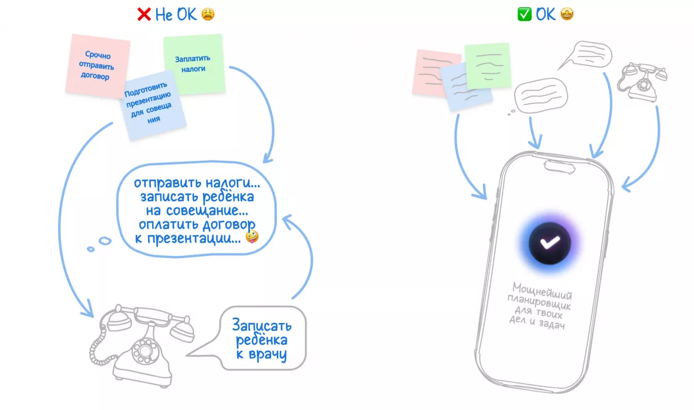 Стикеры создают иллюзию контроля. Если на листках записаны все задачи, то контроль полный, и стикеры не накопитель, а система хранения. Но это, скорее всего, не так, а значит, нам кажется, что мы задачи контролируем, но на самом деле — нет.