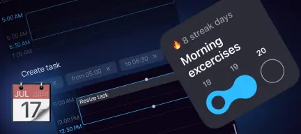 - Меняйте длительность задачи и создавайте задачи жестами — зажмите задачу и потяните за края.