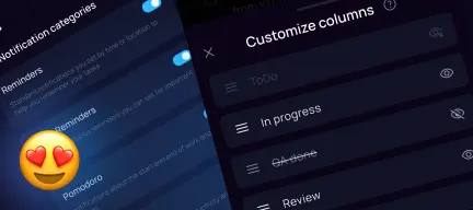 - В Канбане теперь можно перемещать задачи вверх-вниз внутри колонок, если включена пользовательская сортировка.