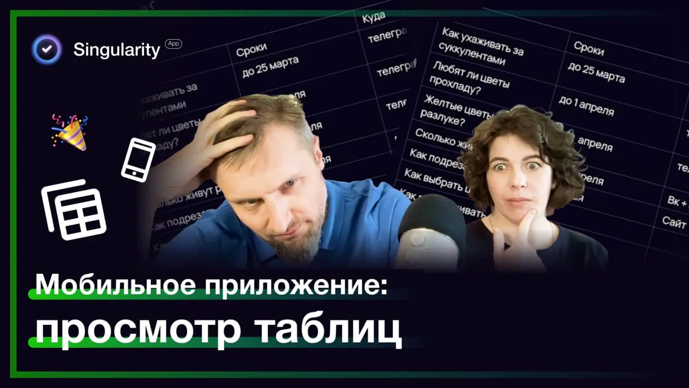 👀 В мобильной версии SingularityApp теперь можно просматривать таблицы, созданные в веб-версии и на десктопе. А ещё — редактировать текст в ячейках. Удобно, если нужно быстро внести правки с телефона ✍️