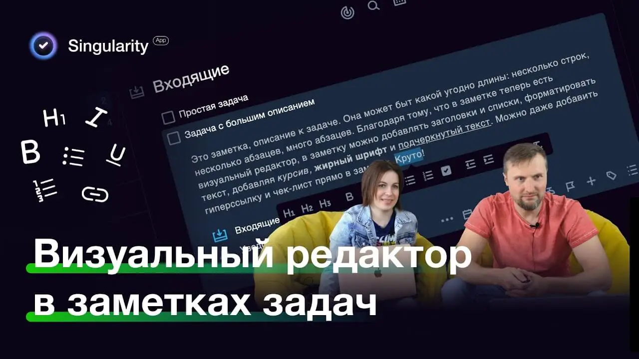 WYSIWYG-редактор в заметках планировщика задач SingularityApp 🎉 Рассказываем и показываем, как он работает и для чего нужен.