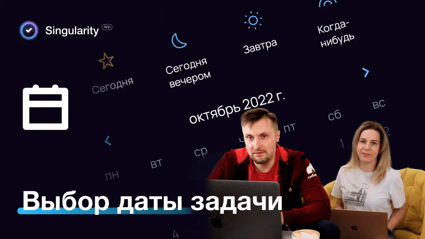 Рассказываем о способах выбрать дату для задач в Сингулярити: контекстное меню, календарик с поиском, выбор дат сразу для нескольких задач 📆