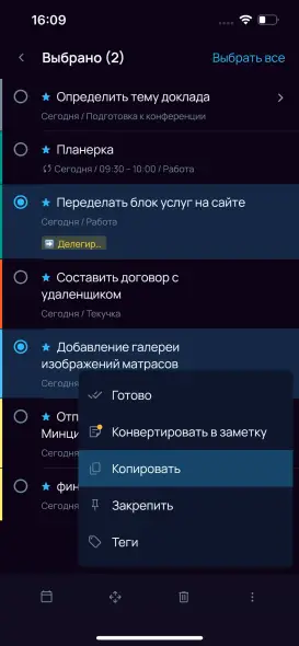 В SingularityApp вы можете легко копировать и вставлять не только текст, но и целые задачи или секции, сохраняя их структуру и содержание. Это помогает быстро переносить информацию как внутри приложения, так и из внешних источников.
