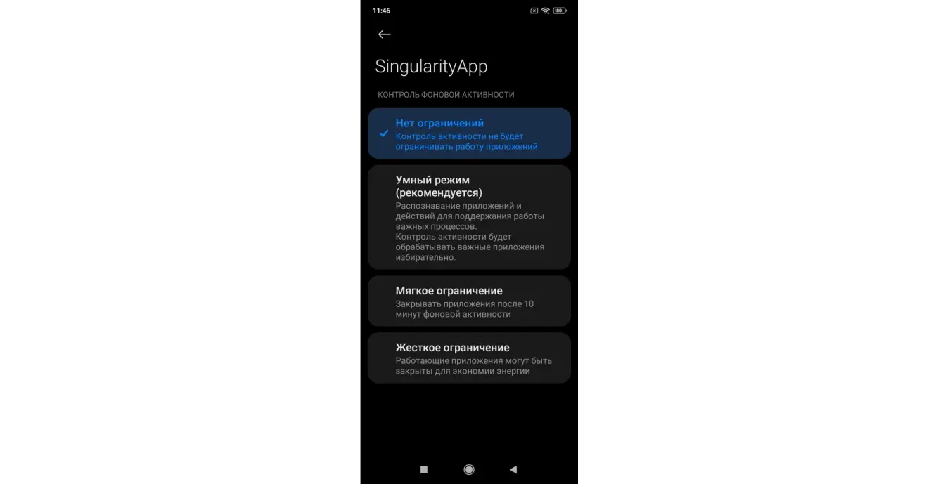 - Проверьте, что приложению не ограничена фоновая активность, и ваше устройство разрешает появление всплывающих окон уведомлений.