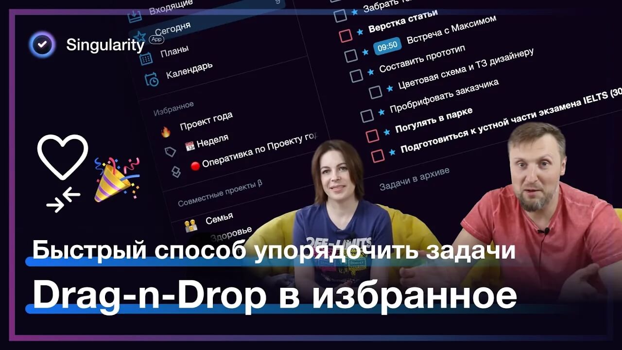 Избранное — это ваша личная панель быстрого доступа к самым важным задачам, проектам, секциям, тегам и сохранённым фильтрам. Всё, что вы добавите в «Избранное», будет всегда под рукой в специальном блоке меню для удобной и быстрой работы.