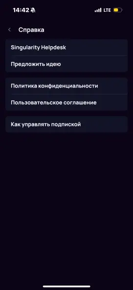 Также в разделе «Справка» вы можете изучить нашу политику конфиденциальности и пользовательское соглашение, быстро перейти в справочный раздел по управлению подпиской на официальном сайте приложения.