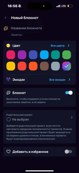 - При создании проекта: В окне создания нового проекта активируйте тумблер «Блокнот». Это сразу создаст проект в формате блокнота.
