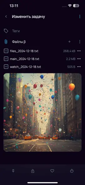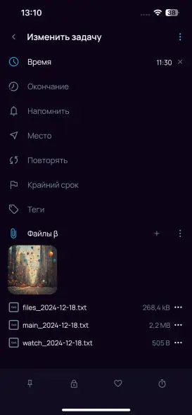 Место прикрепления: Файлы можно добавлять при обычном создании задачи (внутри приложения).