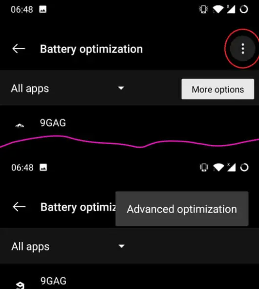 Перейдите в Настройки системы → Батарея → Оптимизация батареи → (три точки) → Расширенная оптимизация.
