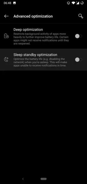 Оптимизация сна в режиме ожидания. OnePlus анализирует, когда вы спите, и в это время отключает сетевые соединения телефона, что может блокировать доставку push-уведомлений.
