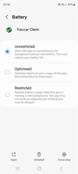 - Убедитесь, что SingularityApp НЕ находится в списках «Приложения в режиме сна» или «Приложения в режиме глубокого сна».