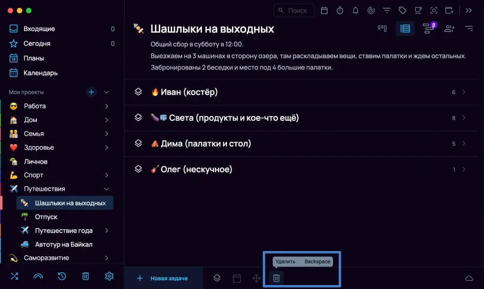 - Если удалить родительский проект, он удалится вместе со всеми дочерними проектами.