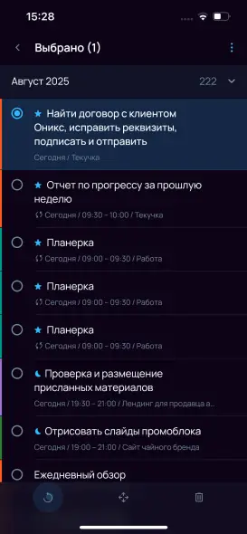 - Свайп вправо: Смахните по задаче слева направо, чтобы восстановить ее.